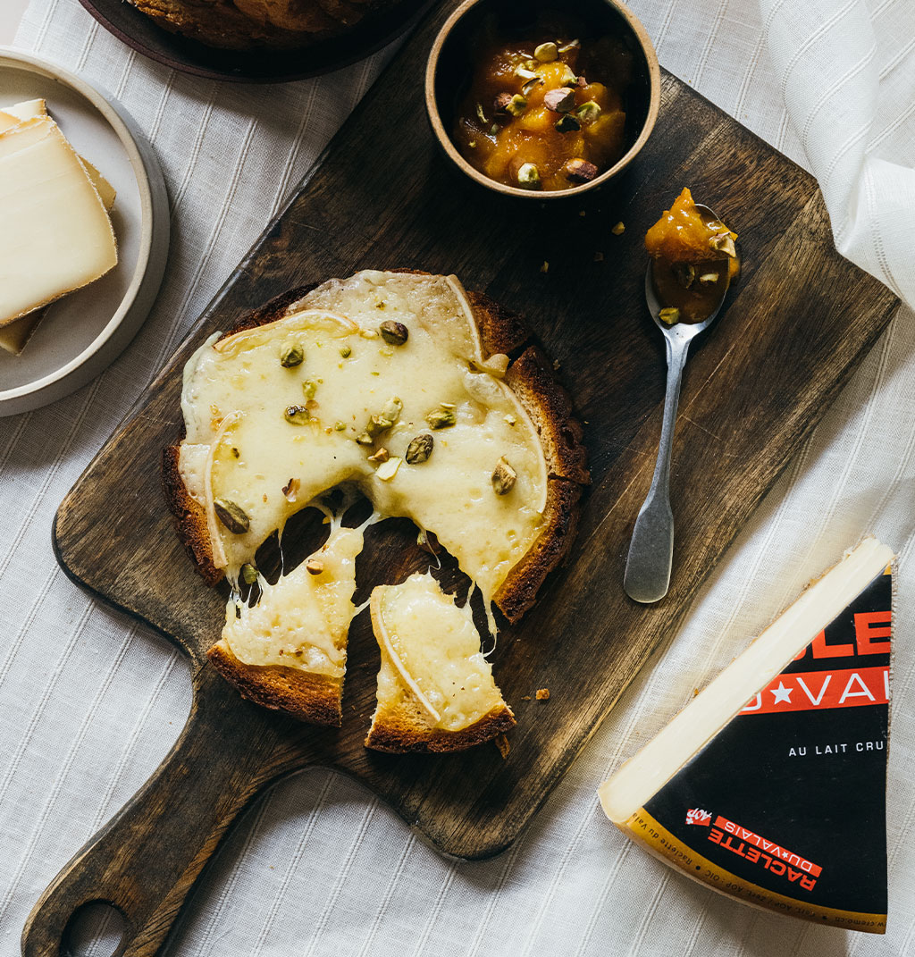 Cover these with the Raclette du Valais AOP slices and bake in the oven until the cheese bubbles.