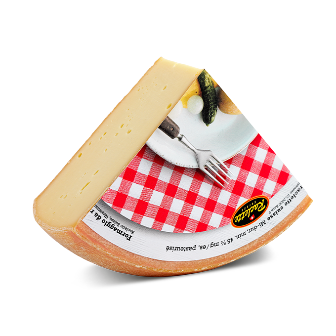 Swiss raclette cheese is a full-fat, finely melting, semi-hard cheese, which has been matured for at least three months and is made from raw or pasteurised cow’s milk without any additives. Raclette cheese is distinguished by its aromatic smell and its outstanding melting properties.