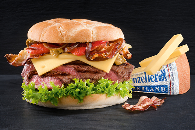 “Alpine dairyman dream” burger with Appenzeller® cheese