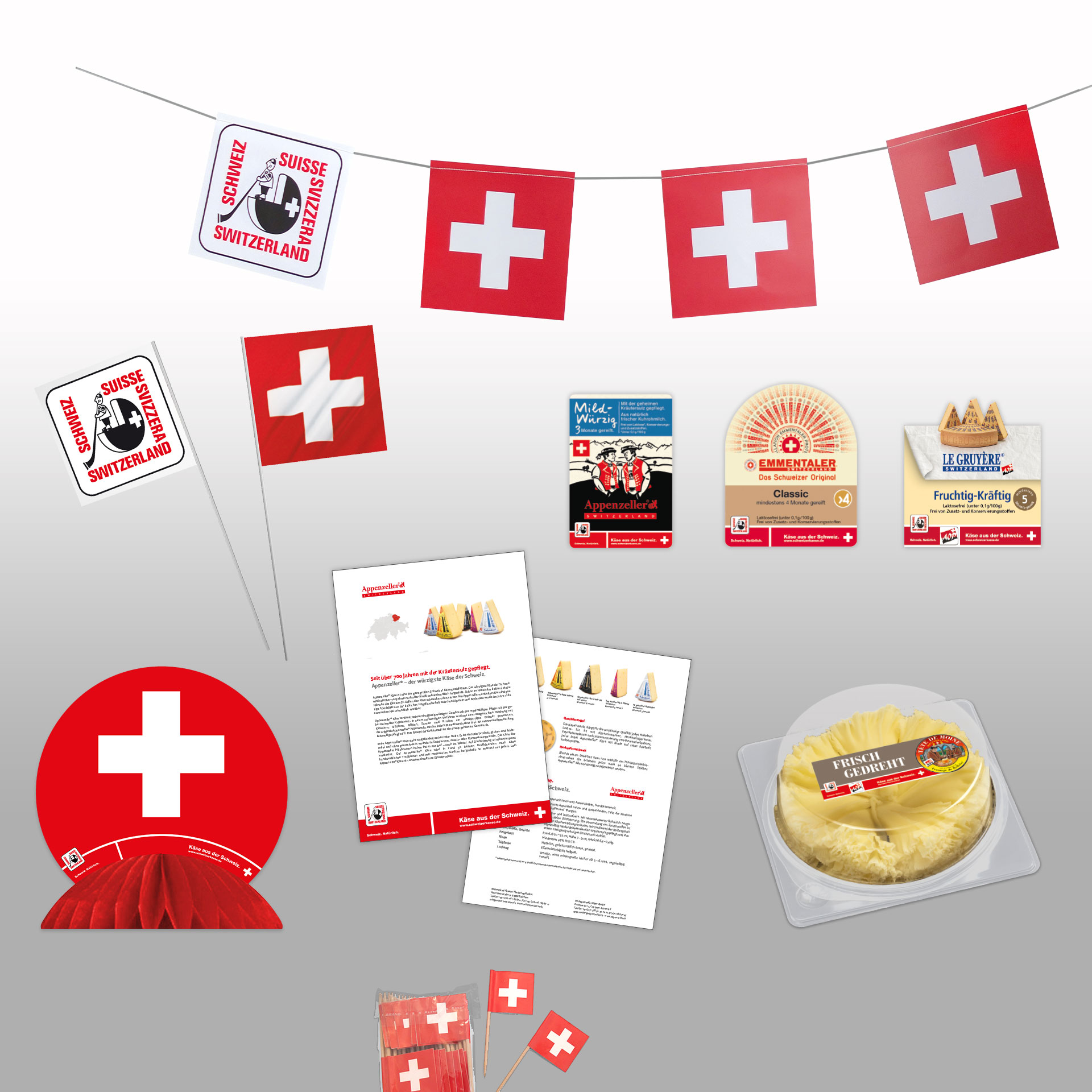Alle Werbemittel dürfen ausschließlich zur Verkaufsförderung von Schweizer Käse eingesetzt werden.