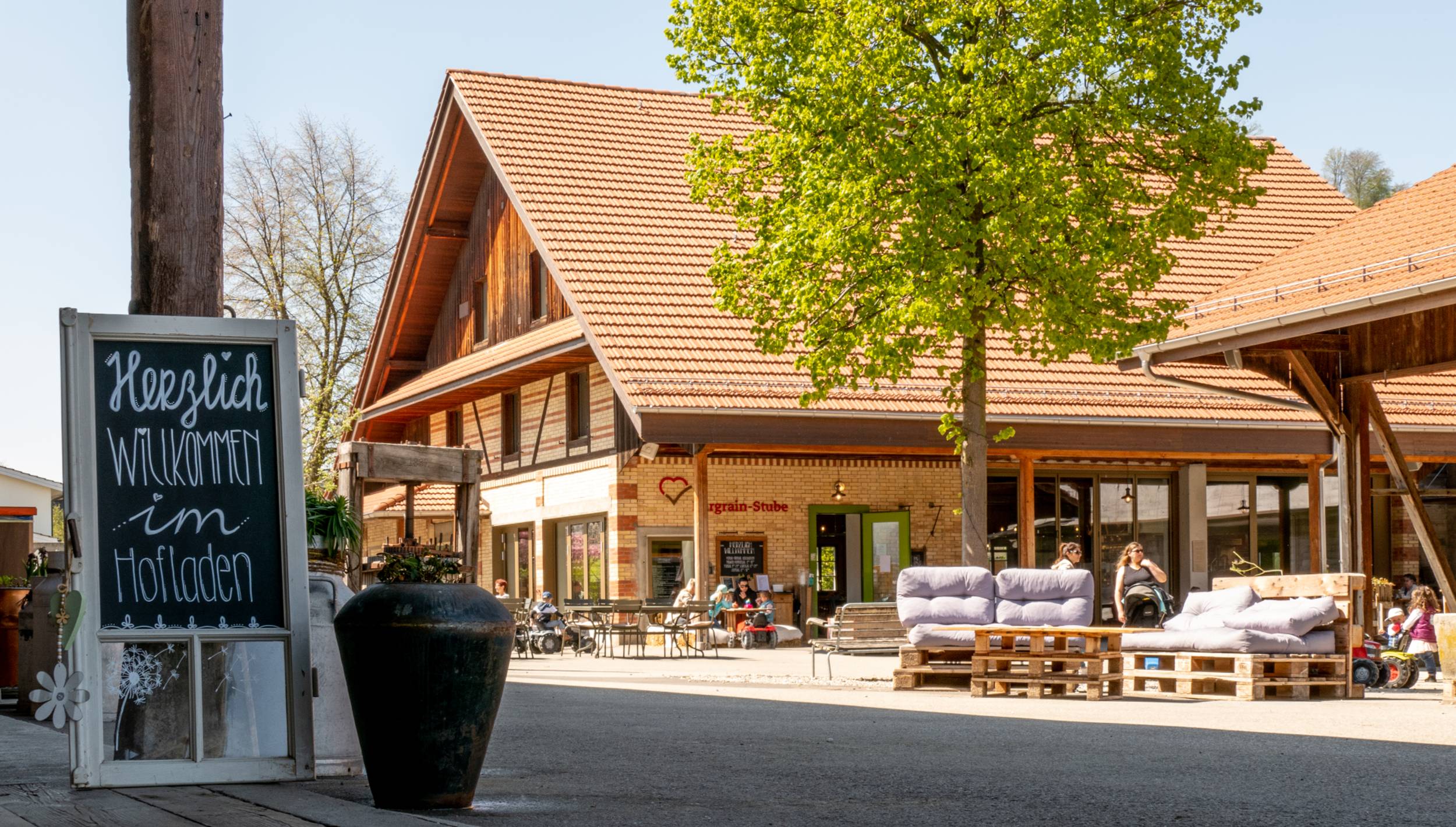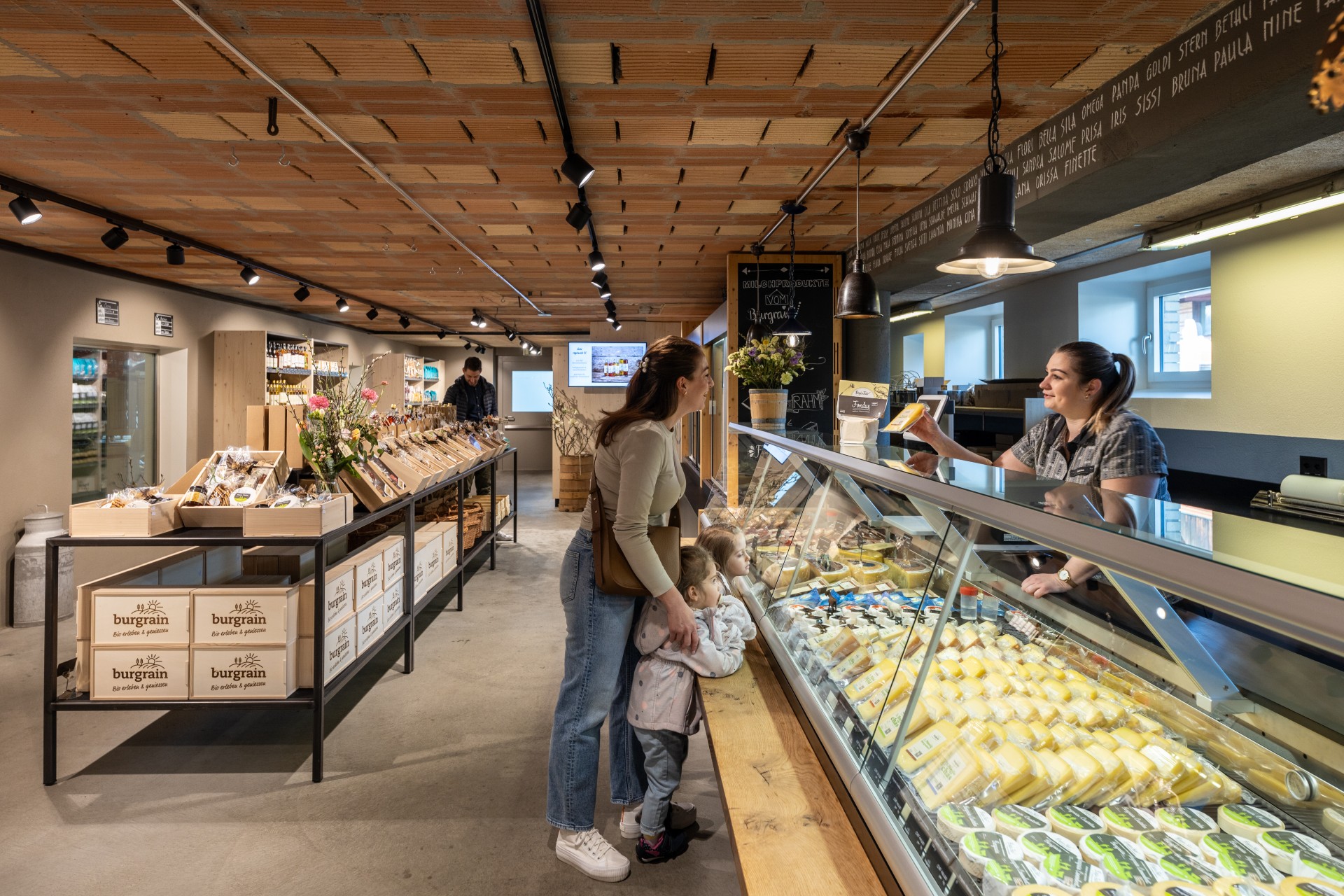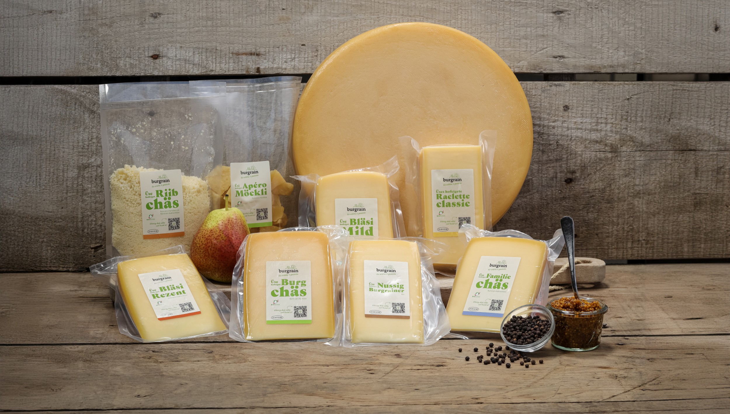 Rund 70 Kühe leben auf dem Biohof Burgrain. Deren Milch wird zweimal täglich zu Fuss in die Hofkäserei geliefert. Daraus entsteht unter anderem der Weissschimmel-Weichkäse Burgrain. Er ist ist vielseitig einsetzbar. Chambriert auf einer Apéroplatte oder auch im Ofen überbacken. Dank seiner Festigkeit behält er trotz Hitze seine Form gut und wird richtig zartschmelzend.